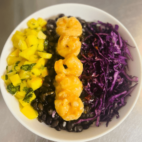 Crispy shrimp meet rice, black beans, and crunchy red cabbage, all tossed in our tangy Bang Bang sauce and topped with sweet pineapple salsa. Bright, bold, and totally crave-worthy.