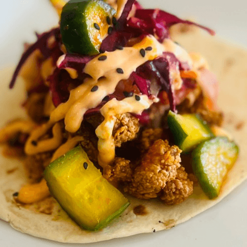 Lightly Battered Shrimp, House Made Bang Bang Sauce, Sweet Thai Chili Sauce, Crispy Red Cabbage, Pineapple Salsa, Flour Tortilla.